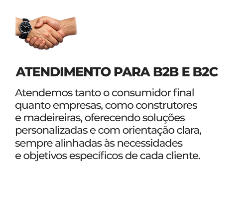 Atuamos principalmente no atacado e na prestação de serviços para outras madeireiras. Hoje, ampliamos nosso atendimento também para o cliente final, mantendo o mesmo padrão de qualidade.
